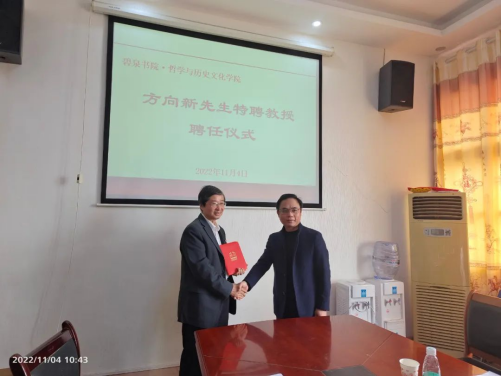 ·哲学与历史文化学院,对方向新教授颁发特聘教授聘书。