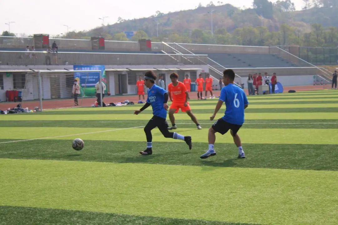 在本次比赛中,参赛球员以高昂的斗志完美地演绎出足球的无穷魅力与无边激情。双方球员过人巧妙、盘带出彩,以精湛的脚法,为同学们展现足球的精彩。