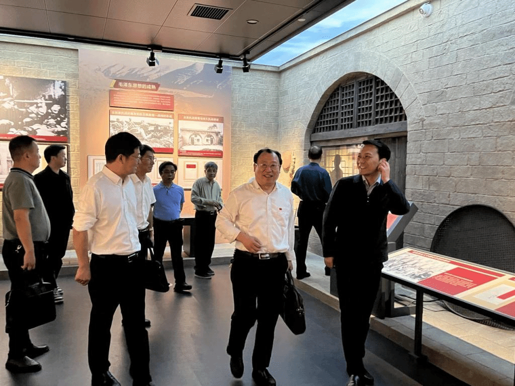座谈交流前,王利一行人首先参观了毛泽东展览馆,讲解员曹瑞为大家介绍了毛泽东思想的形成与发展历程,后刘建平教授亲自为大家介绍了毛泽东思想包含的科学内涵:“毛泽东思想是写在亿万中国人民心中的科学理论,是毛泽东同志留给我们最重要的政治遗产,深深扎根在中国这片沃土上。”