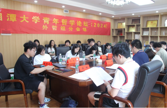 随后,本科生组、马哲组、中哲组、外哲组、科哲与逻辑与宗教学组在各个分会场展开分组讨论。由李锋锋主任主持的本科生组评议在碧泉书院办公楼东506进行,评议老师为湘潭大学董英东教授、文玉林博士。由廖加林教授主持的马哲组评议在碧泉书院办公楼北302进行,评议老师为湖南科技大学陈玉林教授、湘潭大学夏小凤博士。由张晚林教授主持的中哲组评议在碧泉书院办公楼北317进行,评议老师为中南大学谭忠诚副教授、湖南师范大学邹啸宇副教授。由罗伯中教授主持的外哲组评议在碧泉书院办公楼北318进行,评议老师为安徽大学左稀副教授、湘潭大学赵培楠博士。由姚从军教授主持的科哲、逻辑、宗教学组评议在碧泉书院办公楼北511进行,评议老师为湖南科技大学颜中军教授、湘潭大学周丰堇副教授。