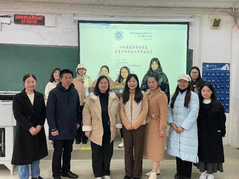 2024年11月22日上午,“碧泉书院·社工茶座系列之实务分享第五期”在湘潭大学第一教学楼218室圆满举行。本次活动的主题为“个体箱庭和团体箱庭在青少年社会工作的运用”,由湘潭大学gooooal即时比分live