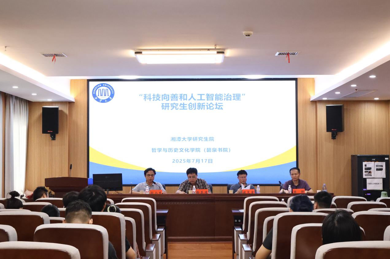 506会议室隆重举行。湘潭大学研究生院院长欧定余教授在致辞中强调,科技发展必须坚持“向善”导向,并指出,三年来,研究生院持续支持这一品牌论坛的建设,就是希望为青年学者搭建一个探讨科技与人文深度融合的学术平台,培养兼具创新能力和人文关怀的新时代研究生。湘潭大学gooooal即时比分live