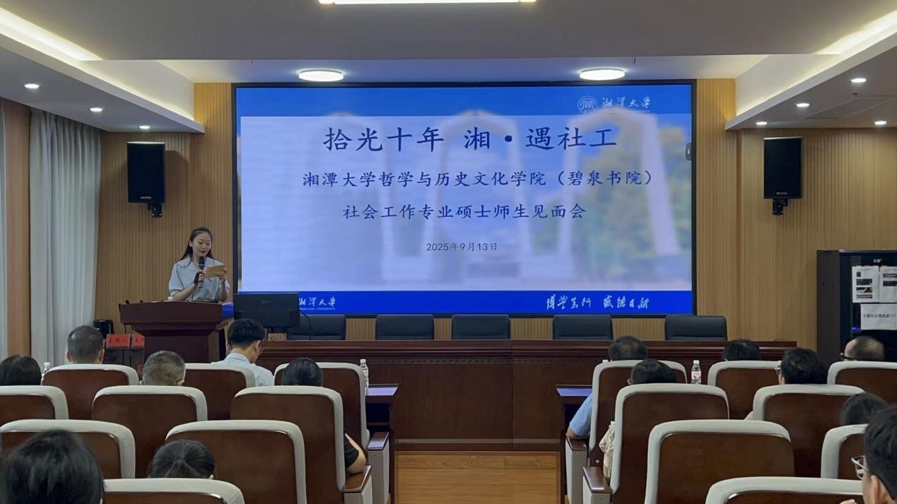 成功举办“社会工作学科建设与人才培养座谈会暨2025级新生见面会”。座谈会回顾与总结了湘潭大学社会工作硕士专业学科建设的十年发展历程,并就学科的未来发展方向、博士点申报、人才培养等核心议题展开深入研讨。座谈会由副院长周骅教授主持,院长张今杰教授致辞,毛小平教授、林艳副教授、王林丽博士、秦加军博士、周金玲博士等五位教师作主题发言,并特邀校外专家把脉问诊、传经送宝。