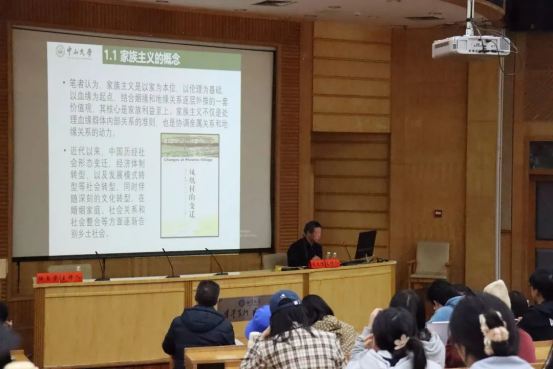 周大鸣教授为湘大师生带来的讲座主题是“从家看中国乡村生活变迁”。讲座由社会学系教授陆自荣主持。周教授主要从“家族主义的内在机理”“家族主义与乡土中国的基础‘三缘’”“家族主义的当代价值”三部分来讲解从家看中国乡村生活变迁。