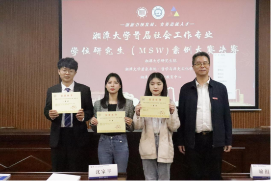 3月12日,湘潭大学首届社会工作专业学位研究生(MSW)案例大赛决赛在研究生楼举办。副校长喻祖国、研究生院和碧泉书院·哲学与历史文化学院相关负责人出席。