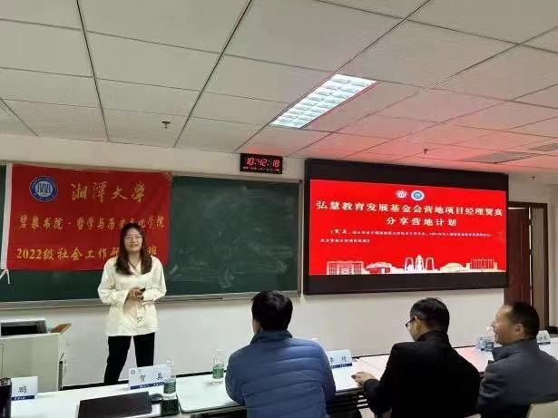 最后,李琦秘书长分享了弘慧对慈善组织共同社会价值的理解,即在于探索社会问题创新解决方案,要做到坚守社会道德底线,激发倡导人性向善。李琦秘书长也代表弘慧向湘大社工研究生发出邀请,希望有意愿的同学加入社会公益事业。