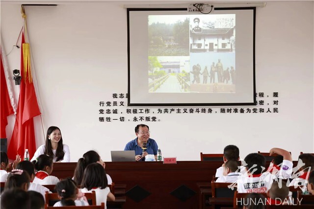湖南日报·新湖南客户端7月20日讯(通讯员 曾宇婷 刘壮)7月18日,湘潭大学副校长刘建平来到雨湖区长城乡繁白村,为“芙蓉学子·乡村振兴”儿童成长夏令营的学员们授课,并与雨湖区长城乡相关负责人交流校地融合共建等事宜。