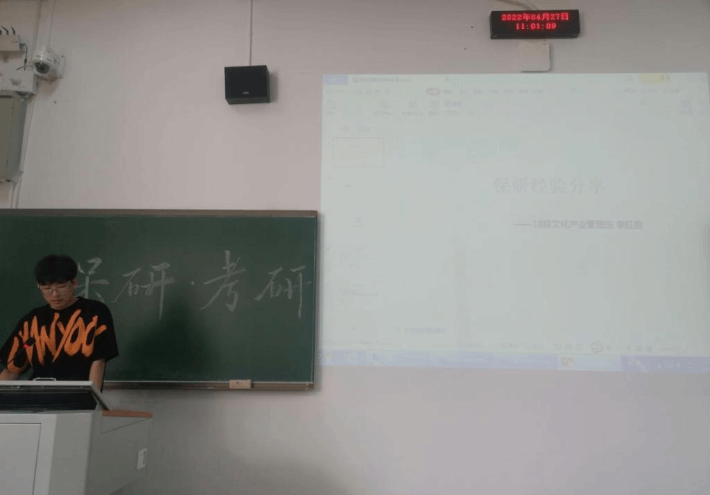 (通讯员:许可、肖童丹)为加强学生对考研知识和经验的了解,营造积极向上的学风,并为正在备考的同学加油鼓劲,4月27日上午10点,2019级文化产业管理专业在逸夫楼411教室举行了保研考研经验交流活动。